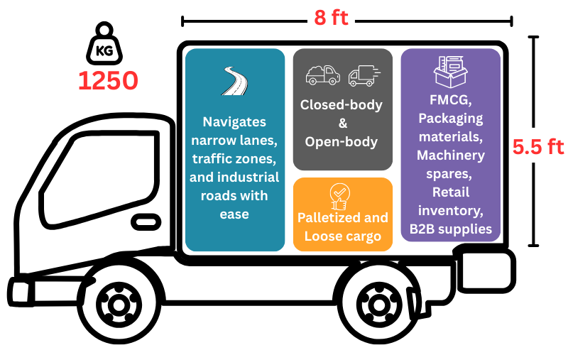 An 8FT pickup truck strikes the perfect balance between payload and maneuverability. Here’s why businesses across Mumbai prefer this category: